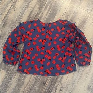 Companies Fantastica Poppy L/S Grey Red Should Ruffle Top Blouse Size Medium