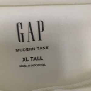 GAP modern funnel neckline, white cropped tank top. Size XL tall. Color is not bright white. RUching on the sides of the top. Soft stretchy cotton-modal blend. Sleeveless.