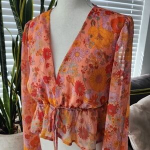 Wild Fable Bell Sleeve. Boho Floral Tie Front Top Size Medium. New without tags.
