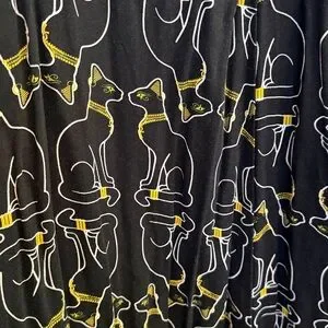 Stylish black midi dress featuring a unique cat print. Perfect for casual outings.with pockets!