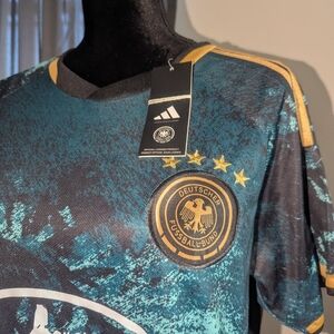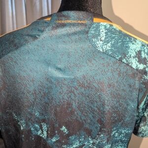 Stylish soccer team Adidas shirt in a striking green graphic design. Perfect for casual wear.