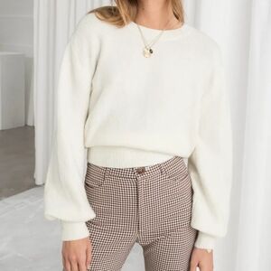 & Other Stories Cream Crop Puff Sleeve Sweater Size Small