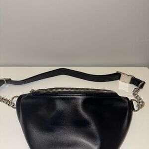 It can be worn around hips, across chest or as a shoulder bag. Has Slotted Card spots in big compartment.