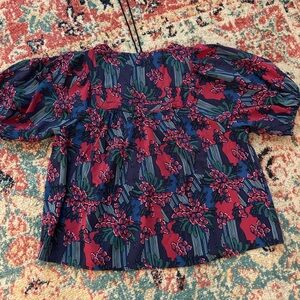 NWOT Michelle McDowell Penny blouse in women’s Small. Centerpiece navy pattern. Generous, oversized, swingy fit. Nice, lightweight fabric.
