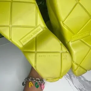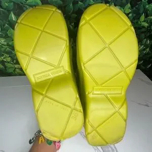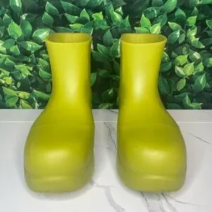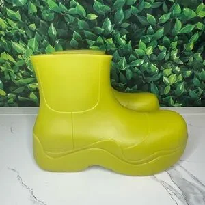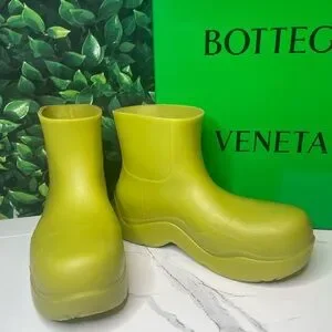 Super cute Bottega Veneta “puddle” ankle boots made of biodegradable rubber. Can be dressed up or down making these the perfect boots for any occasion. Made with comfortable cotton lining on the inside. These shoes have been worn a few times and have minor wear throughout, please refer to photos for further details!