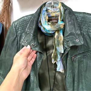 Rare rustic moss GREEN Danier leather jacket w equestrian moto timeless style