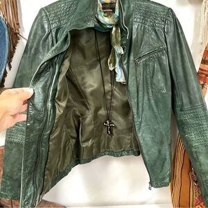 Absolutely gorgeous a perfect shade of rustic moss green a rare Danier Colour fits like a XS PTP-18/18.5” timeless style amazing for layering over any boho ensemble
