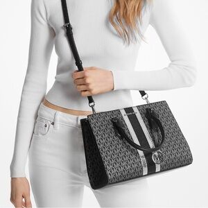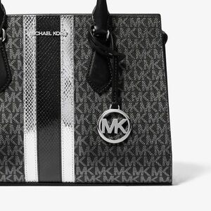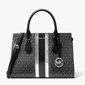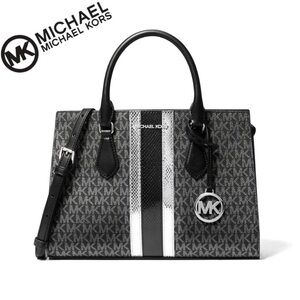 NWT MICHAEL MICHAEL KORS Sheila Medium Signature Logo and Metallic Satchel