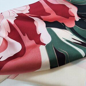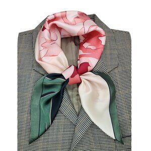 ✨Large Floral Silk Scarf Square Silky Head Neck Wrap Green Pink Flower Accessory