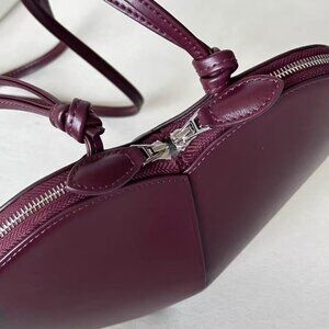 The ALAIA Le Coeur Small Heart-Shaped Leather Cross-body Bag is a charming and unique accessory. Crafted from high-quality leather, this adorable heart-shaped bag features a sleek, minimalist design with the brand's logo elegantly embossed on the front. The adjustable shoulder strap ensures comfortable carrying, while the compact size makes it perfect for holding small essentials like lipstick, keys, and cards. Ideal for adding a touch of romance to any outfit, this exquisite bag is a must-have for fashion enthusiasts seeking both style and functionality.