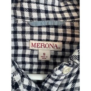 Merona Black White Gingham Plaid Button Front Shirt Small