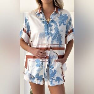 Billy J, Amore Print, Sicily Shorts, co ord set, matching set, summer outfit, resort wear, vacation outfit, button up shirt, floral set, sold out style, Australian brand, US Medium