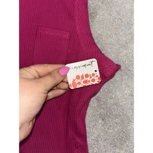 Free People Movement Magenta Pink Ribbed High Neck Tank Top Small NWT