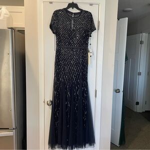 Adrianna Papell Navy Beaded Evening Gown