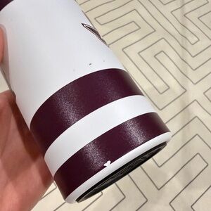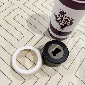 Tall stainless steel printed insulated koozie. Comes with bottle opener accessory. White and maroon Texas A&M logo. A couple of small surface spots/marks in paint pictured.
