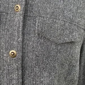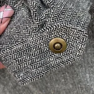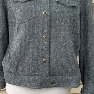 *Liz Claiborne lined charcoal gray with white design jacket has lots of detail with the front snaps, the collar, the 2 functional small chest pockets with flaps, the 2 front slip pockets, the waist snap & the snap closure on the end of the sleeves
