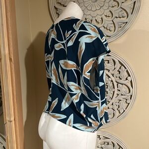 Banana Republic Factory Teal and Beige Leaf Print Silky top