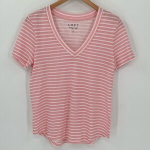 Loft Bundle Of 2 Everyday V-Neck Tee Coral Pink Stripe Women Small Very Soft