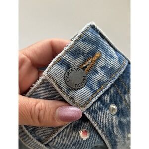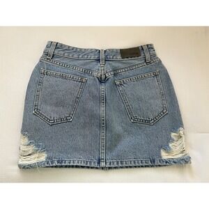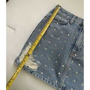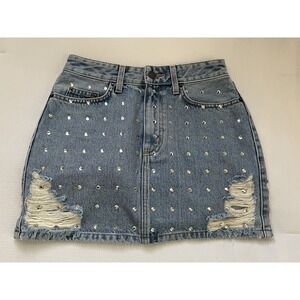 Y2K Rhinestone Studded Denim Mini Skirt Womens 26 US 2 Distressed Club Fairycore