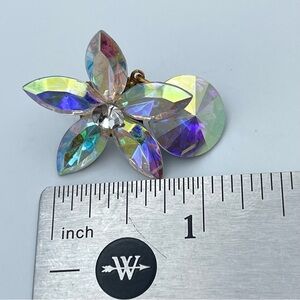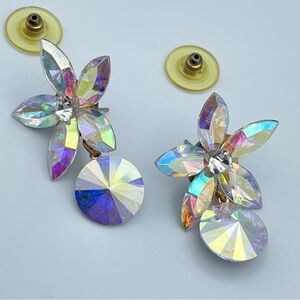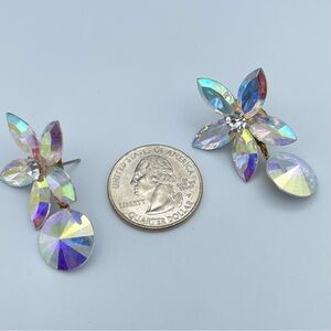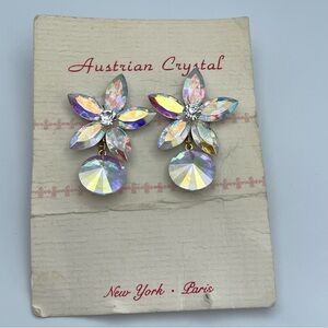 Vintage Austrian Crystal Aurora Borealis Flower Dangle Earrings