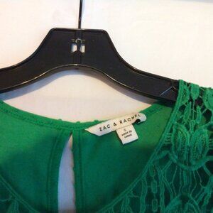 Keywords: lace yoke, sleeveless, green, quiet luxury, soft grunge, romantic, boho, Zac & Rachel, size S, keyhole back, crochet detail