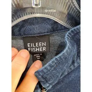 Eileen Fisher Womens Full Zip Blue Denim Jean Jacket Size M Cotton Blend