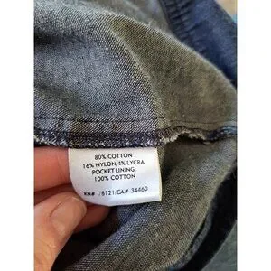 Crafted from durable denim, this Eileen Fisher jacket offers a modern twist on classic outerwear. Its full zip closure provides convenience while maintaining a sleek silhouette. Ideal for layering, this piece adds a touch of sophistication to casual ensembles.