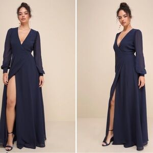 $99 Retail LULU's Elegant Sophisticated Special Event Wedding Bridesmaid Flowy Romantic Long Sleeve Wrap Dress NWOT (new without tags)