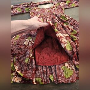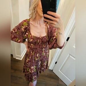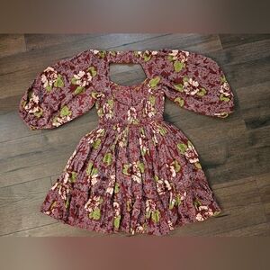 New with tags and no callouts. Adorable boho floral burgundy dress with a stretchy middle and flowy sleeve. She has an opened back and soft skirt. She is perfect for any occasion.