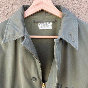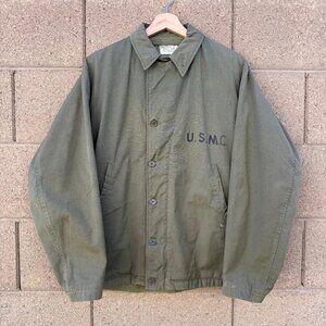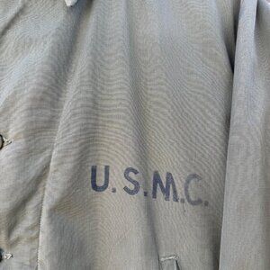 General wear, check all measurements before purchasing, no refund will be allowed all information is provided in each description. Chest is across pit 2 pit measurement, length is from top of collar to the bottom hem, sleeve is outer sleeve length, shoulder is from the shoulder point across just like chest. True Vintage, Made in USA, Military Issued, Conmar Zipper, Military Jacket, N-4 jacket, looks similar to M41, N-4 US navy jacket, stencil is originally USN but edited but solider with USMC. nice wool lining. some wear shown throughout,
