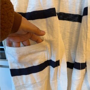 Stylish Old Navy cape. Cream with navy stripes. Perfect for layering.