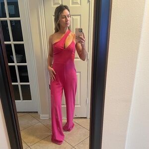 Lulus Chic Credentials Pink Sleeveless Asymmetrical Wide Leg Jumpsuit - Size M