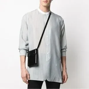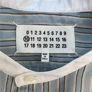 Maison Margiela Blue Pinstriped Band Collar Men’s Long Sleeve Button Up Shirt