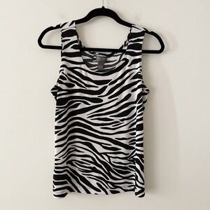 Chicos Zebra Print Slinky Tank Black White Size L Stretch Boho Western Old Money