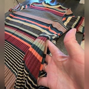 Elevate your wardrobe with this chic long sleeve dress featuring a vibrant multicolor striped pattern. Perfect for any occasion, this dress combines style and comfort effortlessly.