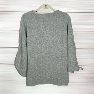 The Cashmere Project Cashmere Sweater Ruched Tie 3/4 Sleeve Gray Crew Neck M