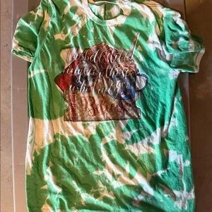 Vibrant green tie-dye kids shirt with a fun graphic design. Perfect for casual wear.