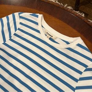 Boden Breton Stripe Easy Fit Mini Dress Blue/White Stripe 8L Jersey 3/4 Sleeve