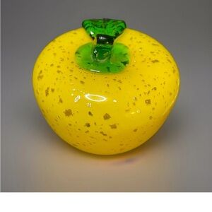 Vibrant Handblown Murano Glass Golden Apple and Pear with Metallic Flakes