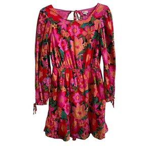 Billabong Heaven Sent Floral Long Sleeve Open Back Mini Dress SZ M