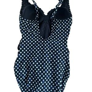 Flattering, classic, and luxe — this Profile by Gottex one-piece delivers the perfect blend of style and support. Features a chic black-and-white abstract print, soft ruffle-detail straps, built-in shaping, and a tummy-control panel for a smooth, confidence-boosting fit. High-quality fabric and elegant silhouette that Gottex is known for.