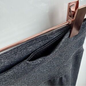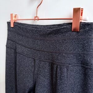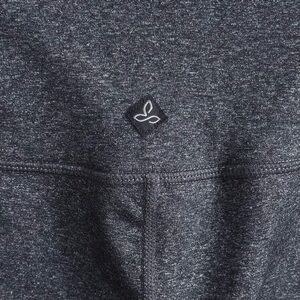 Prana Contour leggings in Charcoal Heather, mid-rise bootleg with a wide flat waistband for comfort. Features a hidden waistband pocket to store small essentials like keys or cards during activities.
