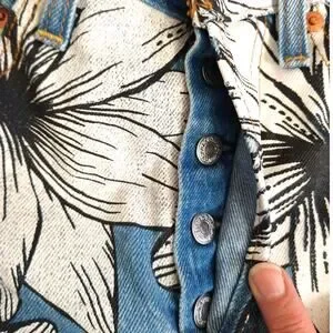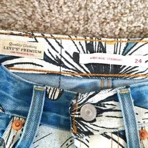 Levi's Farm Rio jeans, Ribcage crop jeans, Levi's x Farm Rio, high rise denim, cropped jeans women's, size 24 Levi's, Levi's collab jeans, summer denim