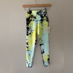 NWT Electric & Rose Women’s Venice Leggings Tie-Dye Black, Yellow, Aqua Blue XS
