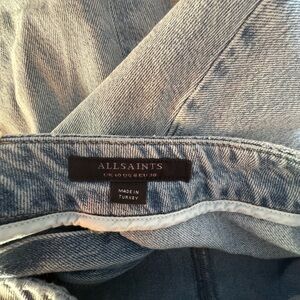 All Saints Light Blue Asymmetrical frayed hem denim skirt. Size 6