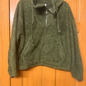Soft olive green sherpa jacket. Features a cozy texture and stylish design. Super oversized!