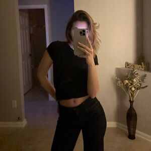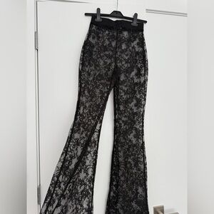 Elevate your wardrobe with these chic black lace flare pants. Perfect for adding a touch of elegance to any outfit.