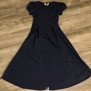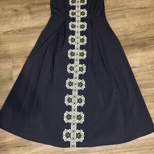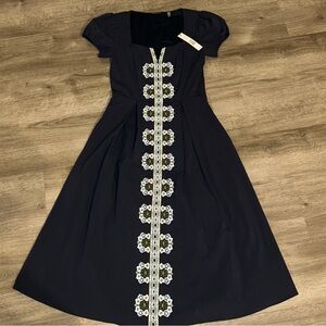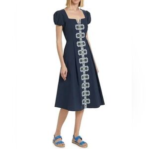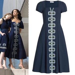 ELIE TAHARI The Faye Pleated Floral-Embroidered Midi Dress