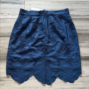 NWT lightweight navy lace mini skirt. Features intricate floral patterns with scallop edge detail.