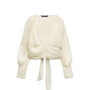 Zara ecru pleated blouse size small